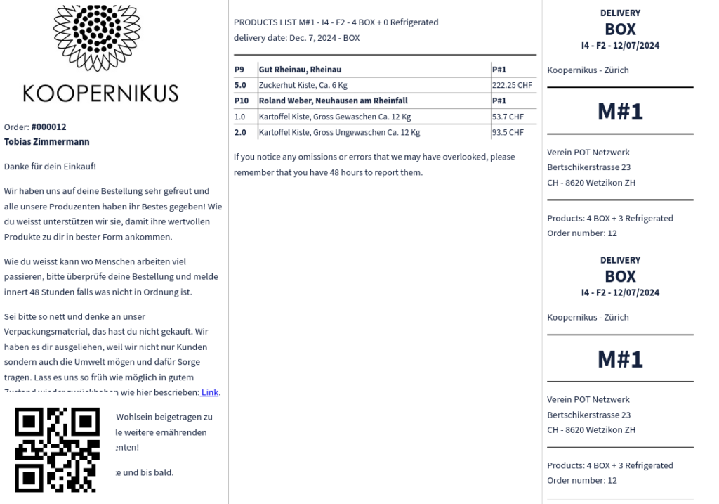 Loonity will provide via email to every user cooperating as producer, market or distributor with the necessary instructions to follow the plan. Clear order lists, packaging information and labels contribute to an optimal logistic flow and thereafter to a perfect service for the customers.