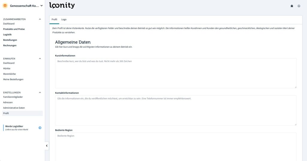 Als in Loonity registrierter Produzent hast du die Möglichkeit, ein ausführliches Unternehmensprofil auszufüllen. Neben einigen grundlegenden Daten wie Logo, Kontaktinformationen und belieferter Region kannst du deine Kunden über das informieren, was dich als Produzent einzigartig macht: Produktionsmethoden, ökologisches Engagement und soziale Praktiken.